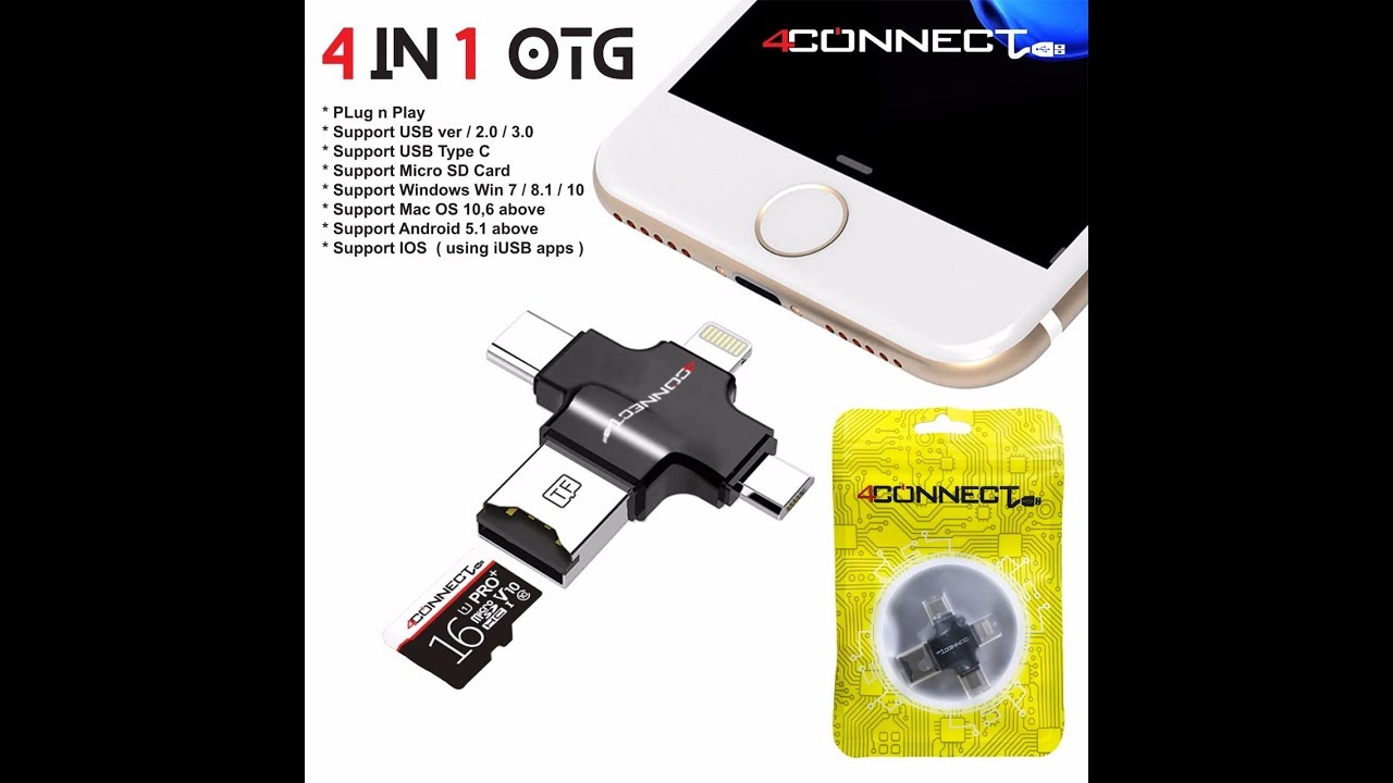 Otg 4 In 1 4 Connect Untuk Ios Micro Usb Type C Pc Notebook